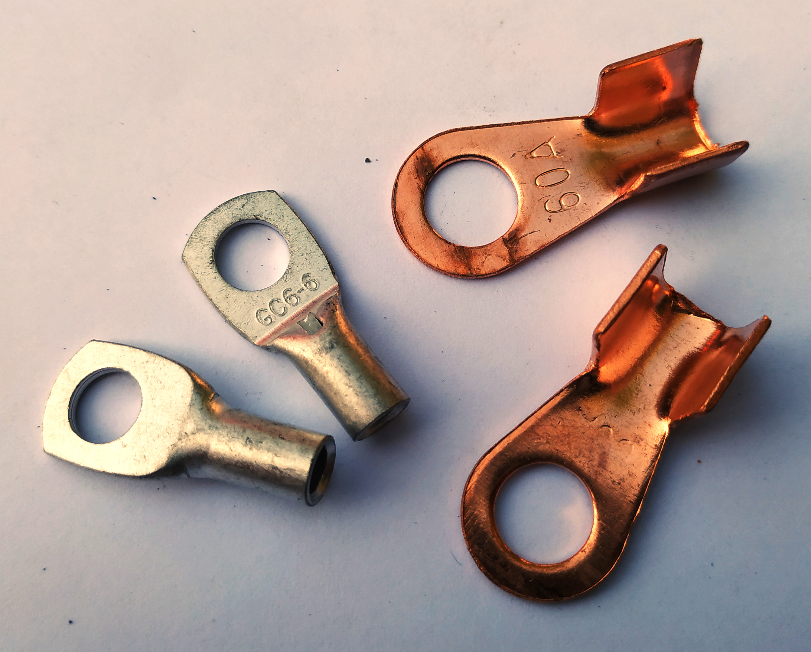 Copper or brass lugs have their current rate often written on the lug. Examples: connecting a main switch, connecting BMS main conductors. You may want to use a brass threaded rod (like M6) and brass nuts for connecting lugs. Alternatively, galvanized or stainless steel bolts and nuts are possible as long as is realized that they don't conduct electricity as well as brass and copper. Finish with shrink tube for isolation.