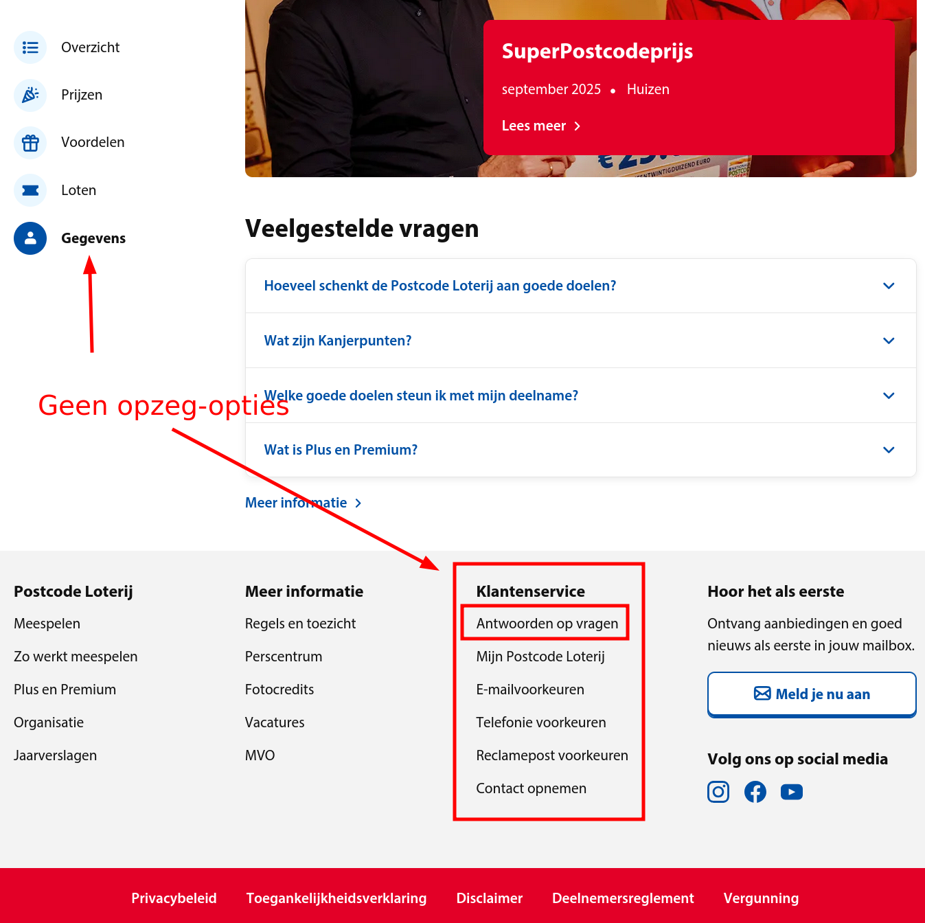Postcodeloterij opzeggen