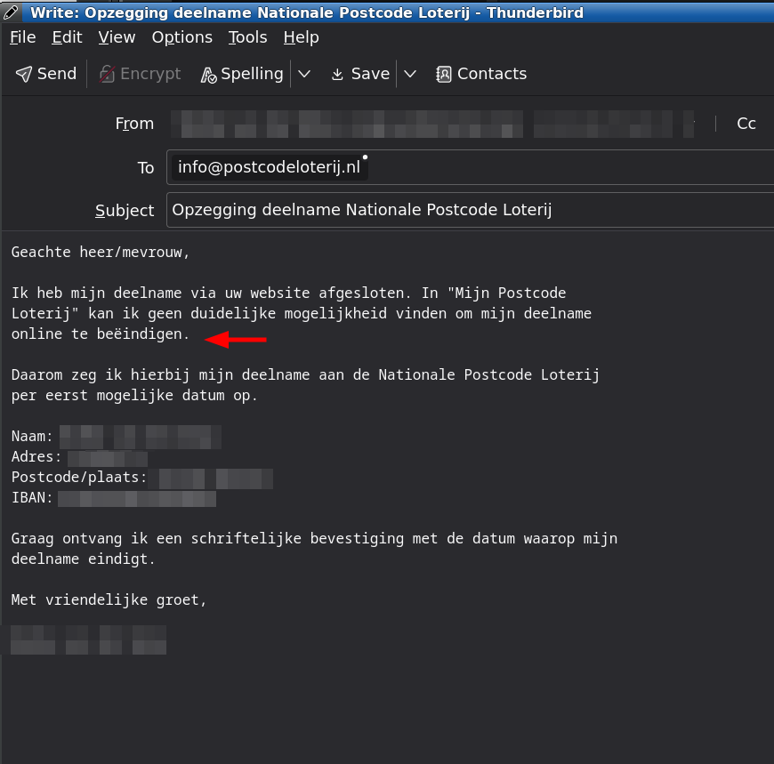 Opzeggen bij de Nationale Postcode Loterij begint met een opmerkelijke stap: