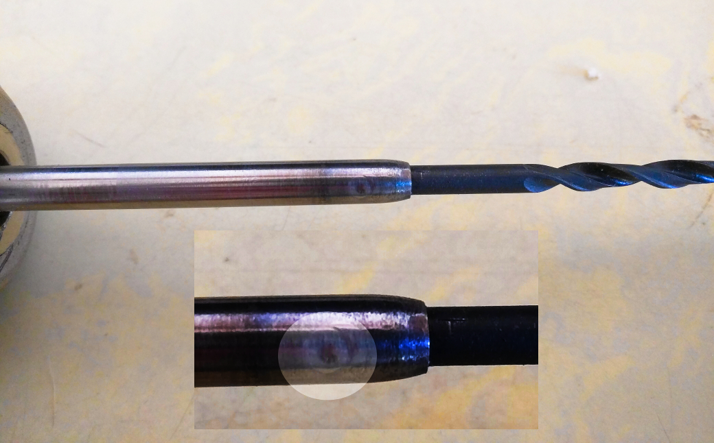 This example is a 4 mm HSS drill in a 6 mm 304 steel tube. What you see is one of two welding spots. Total needed operational length: ~200mm. You may want to do the welding spots at different cross sections heights in order to reduce influence of material properties, in order to achieve a better torque rate.